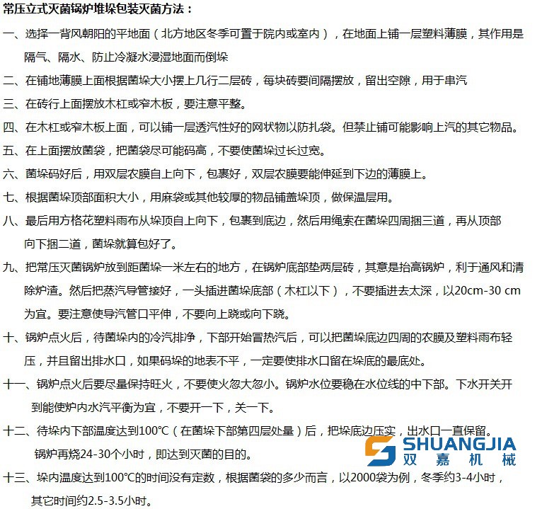 湖北雙嘉食用菌機(jī)械設(shè)備有限公司-本廠專業(yè)生產(chǎn)銷售各類食用菌機(jī)械設(shè)備-食用菌生產(chǎn)流水線-滅菌柜-全智能電烘干機(jī)-空氣能烘干房-裝袋扎口一體機(jī)-菌棒傳送帶-菌包真空負(fù)壓補(bǔ)水機(jī)-自走式拌料機(jī)-菌棒脫袋分離機(jī)